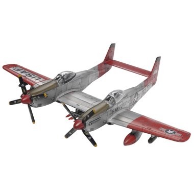 1-72 Scale. Measures 6 5/8". Wingspan: 8 7/16". Parts: 71 A radical departure from the conventional single fuselage airplane, the Twin Mustang was not, as is commonly believed, two P-51 Mustangs coupled together. It was largely a new aircraft based on the P-51 design with many aerodynamic changes made to achieve greater range at higher speeds. This unique aircraft could be controlled from either cockpit. The pilot had a full array of instruments the co-pilot had relief and emergency instruments. Movable propellers, two figures with opening canopies and open or closed gun compartment. Optional rockets, bombs, fuel tanks or radar pod. Authentic optional markings for F-82G, 46-377, 449th All Weather Squadron Ladd Air Force Base, Alaska. Last prop-driven fighter in the USAF or F-82F, 46-414, 52nd All Weather Group, Mitchell Air Force Base. Molded in light gray and clear. Skill level 2.